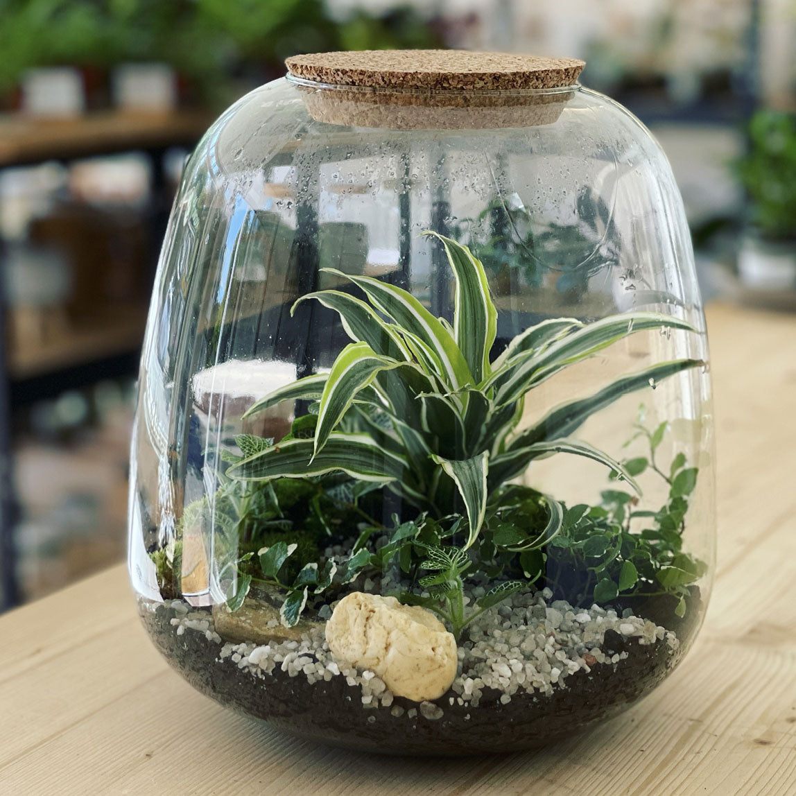 In unseren Flaschengarten DIY-Sets sind alle Materialien enthalten, die zum Anlegen deines Flaschengartens benötigst.