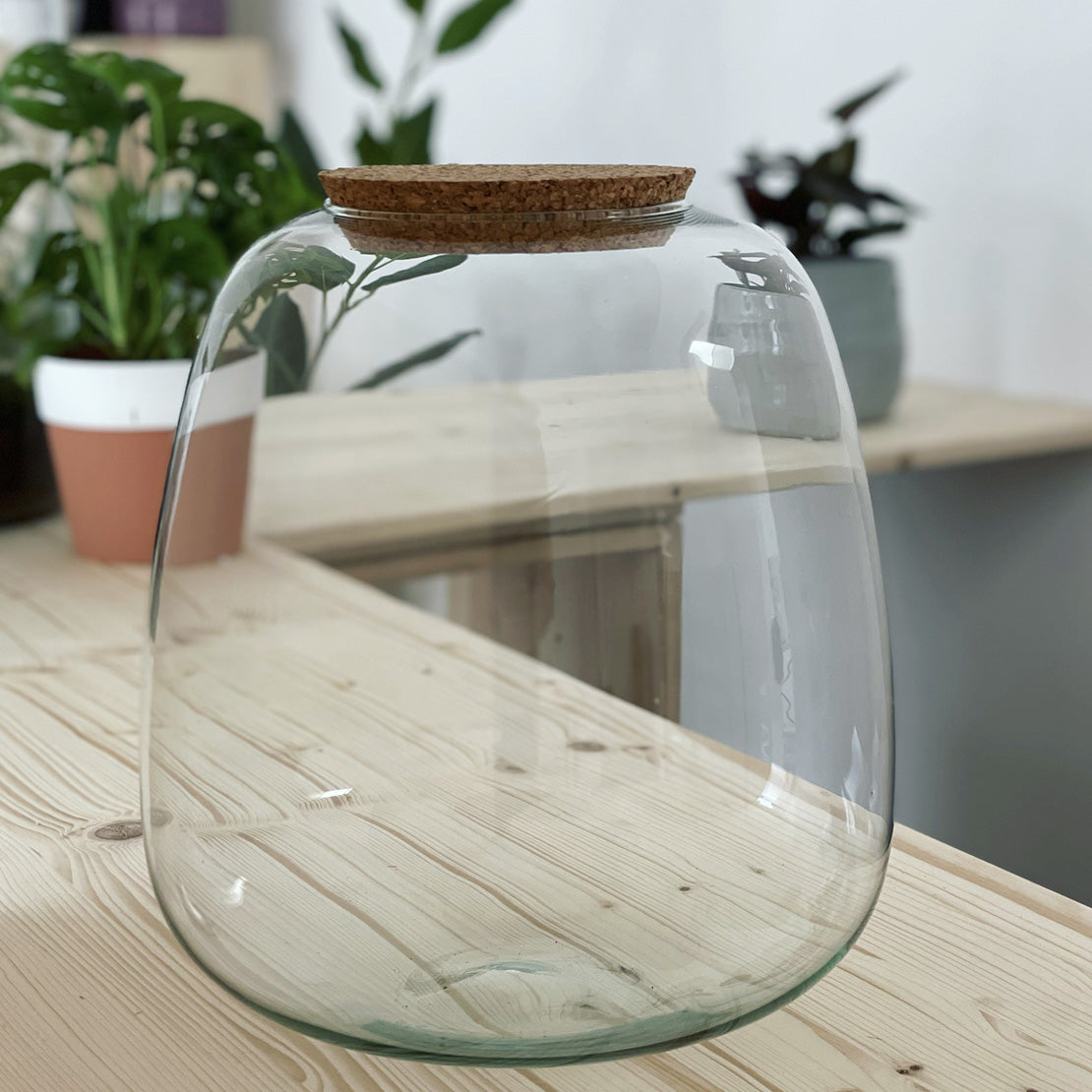 Handgefertigte Eco-Glasvase mit einem passenden Korken.