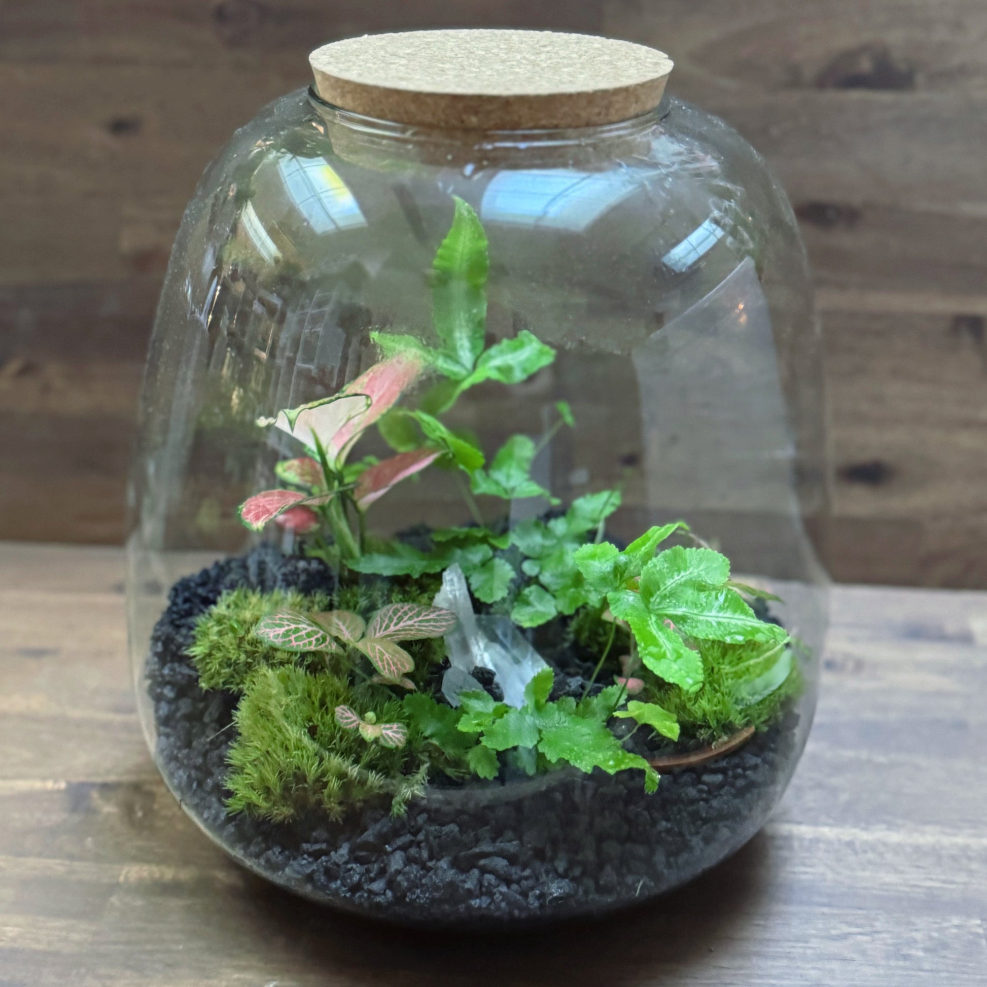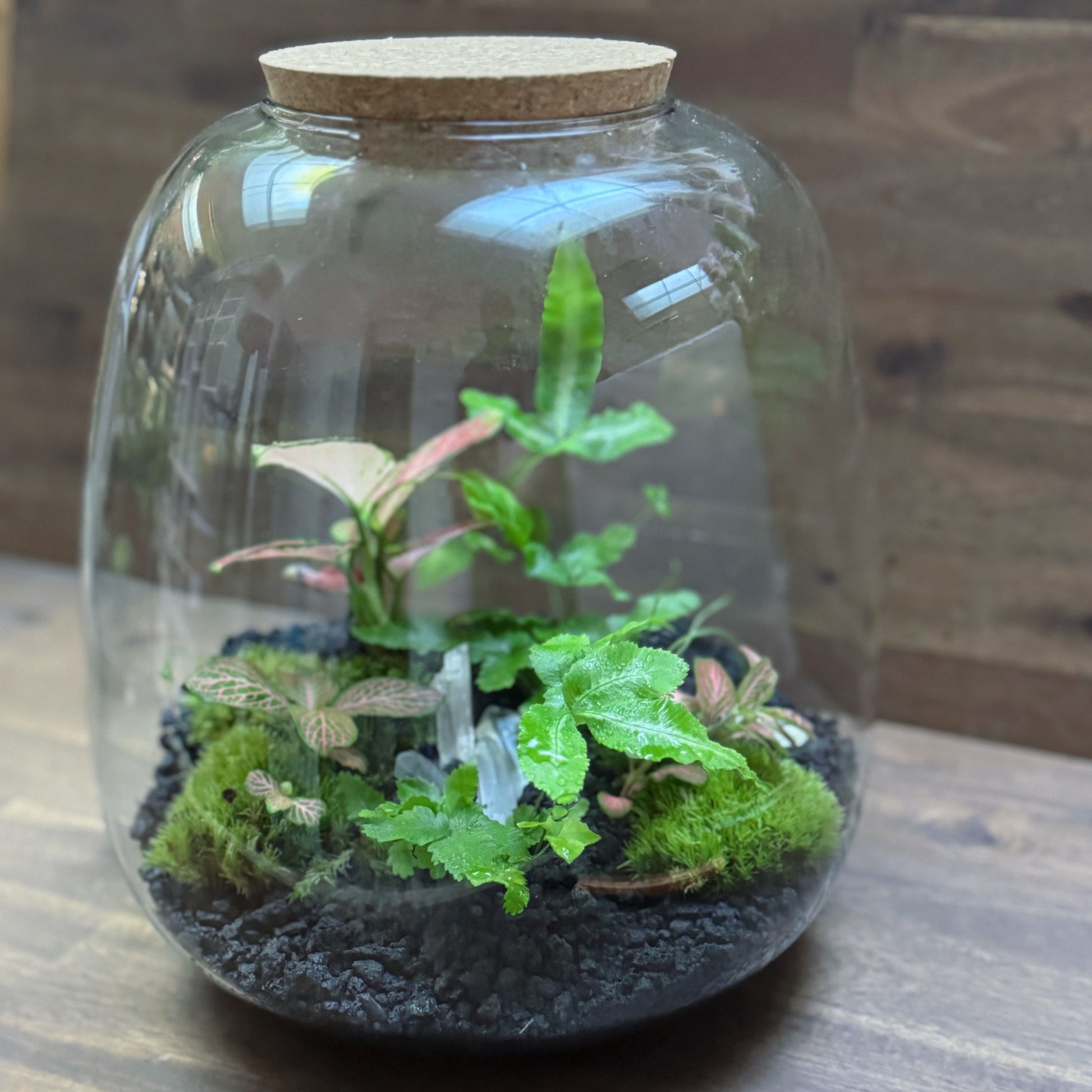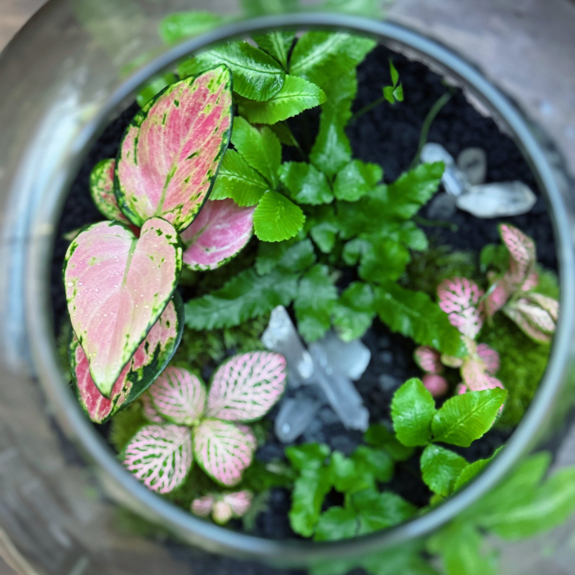 Flaschengarten DIY Set No63 - Pteris cretica x Fittonia 'Salmon Ruby Lime' x Aglaonema 'Red Valentine'