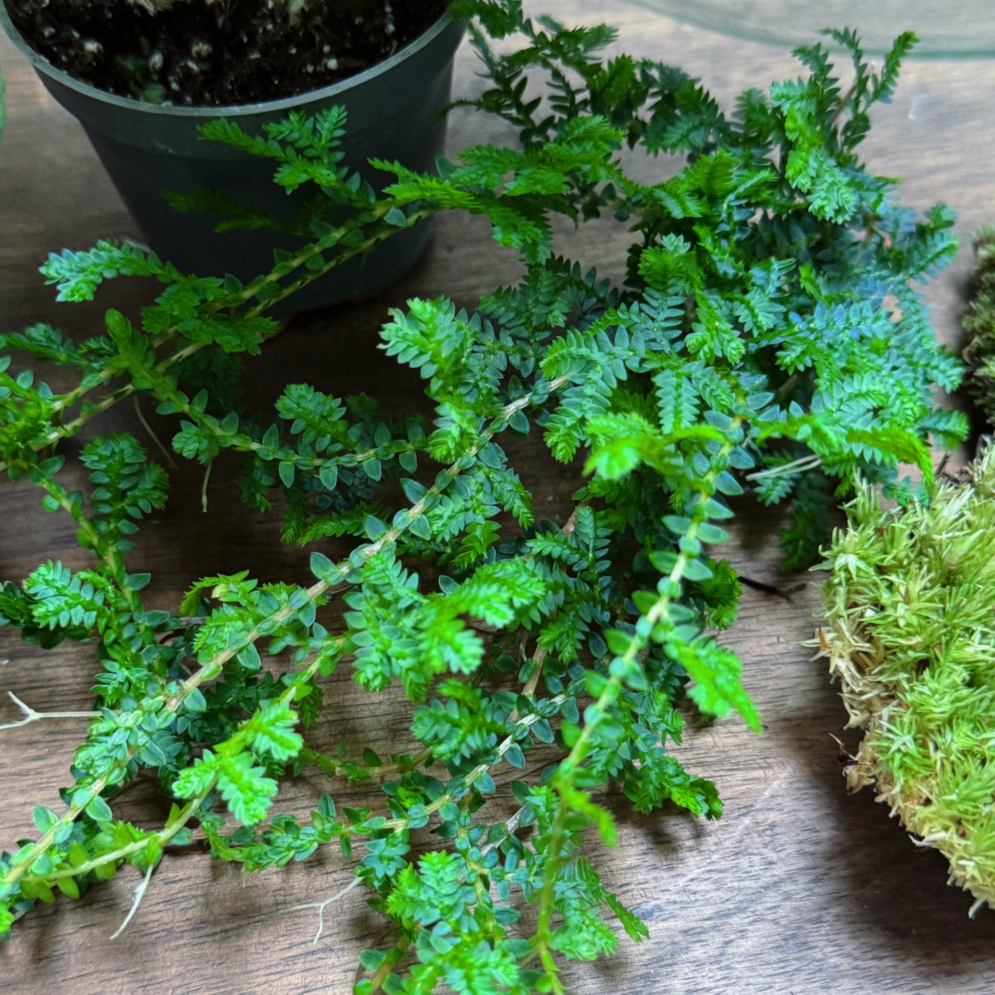 Lege die Selaginella uncinata Stecklinge locker auf das Lavagestein, sodass diese ihre Wurzel weiter ausbilden und in die Lavasteinoberfläche hineinwachsen können.