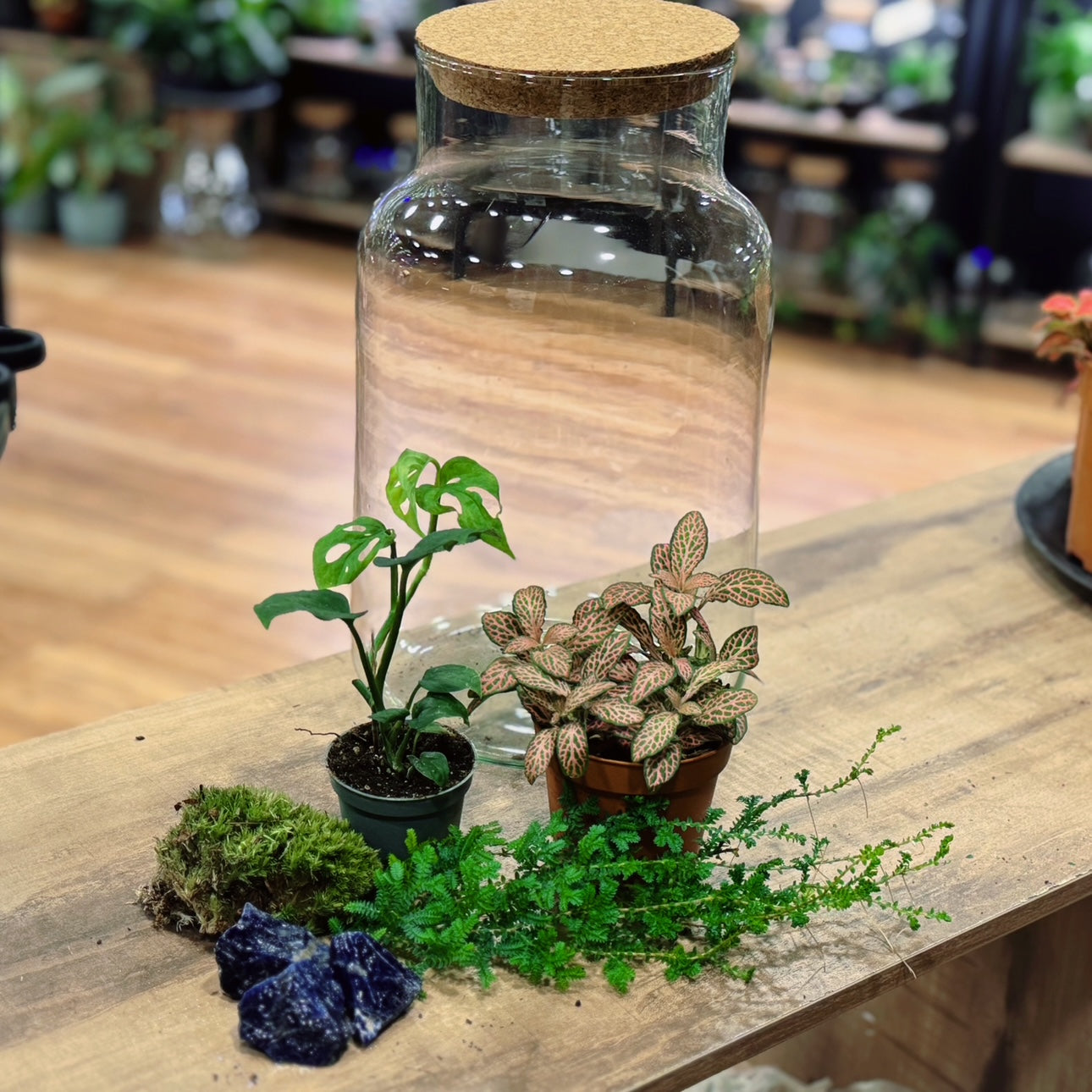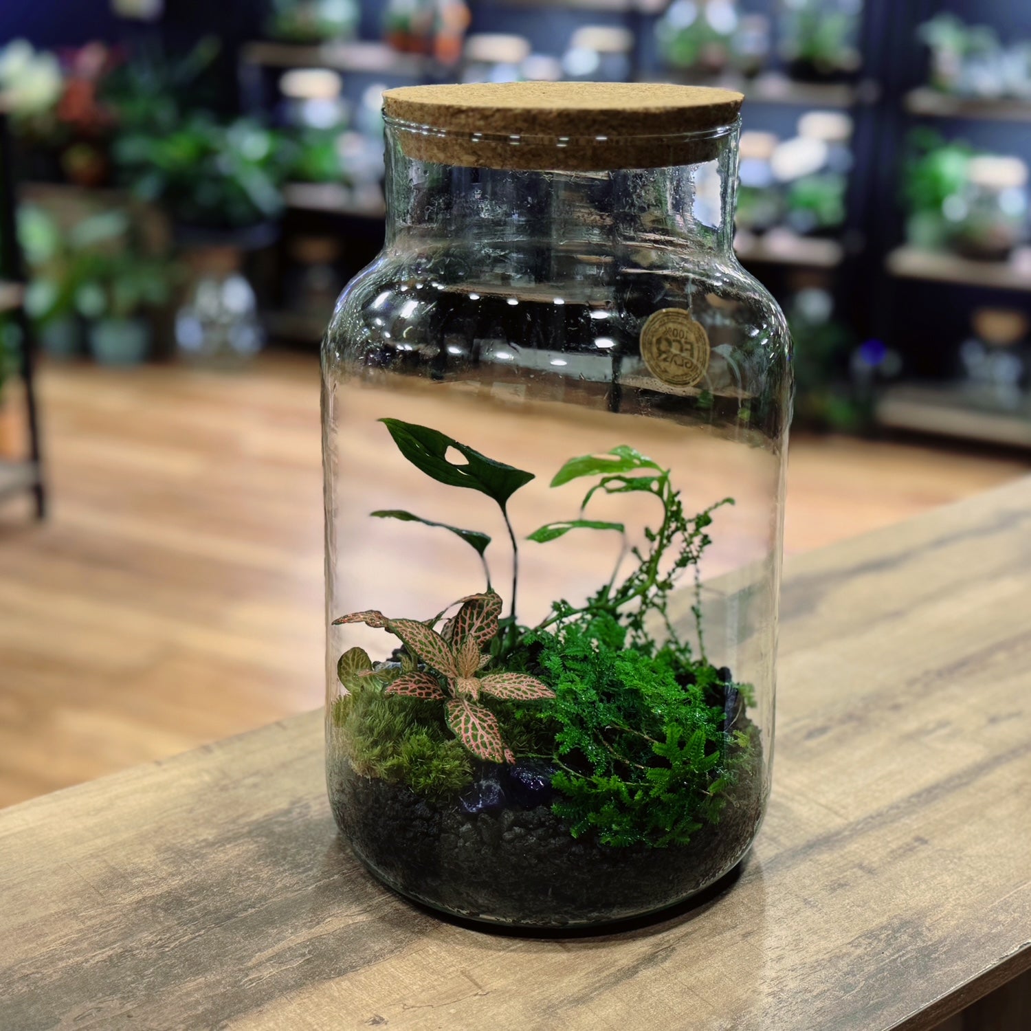 Flaschengarten DIY Set No72 - Monstera adansonii x Fittonia Mosaic Mistral x Selaginella uncinata